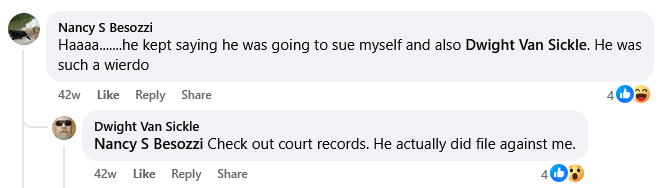 - Dwight van Sickle, for “defamation”: an actual case that was dismissed